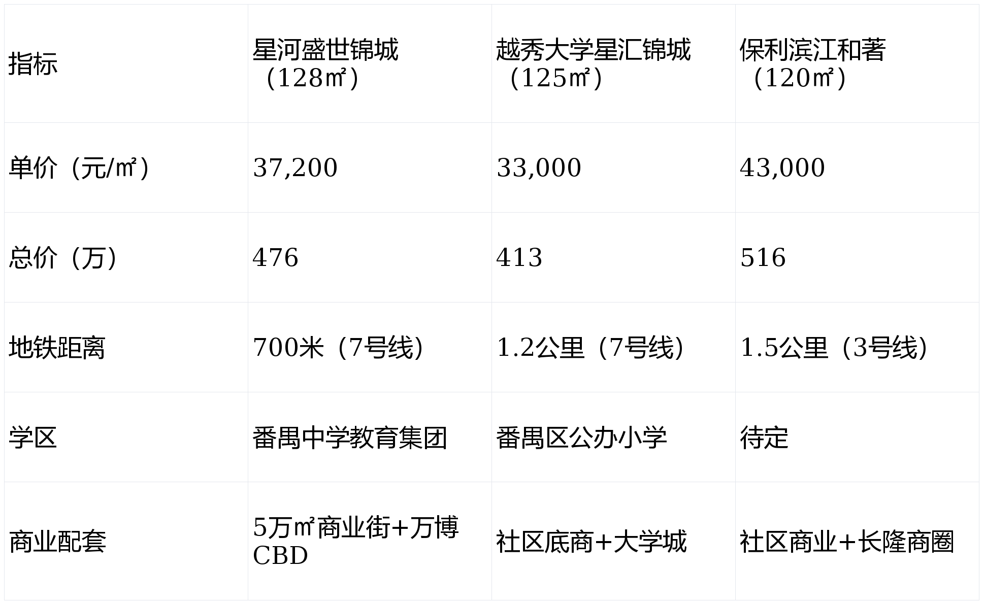 数据印证:安居客数据显示,2026年1月番禺区新房均价39,478元/㎡,星河盛世锦城3.72万元/㎡的价格,比周边竞品(如越秀大学星汇锦城3.3万元/㎡)高12%,但考虑到其“地铁+学区+综合体”的配置,性价比仍居首位。